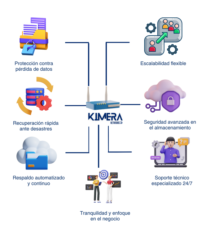 Estas ventajas posicionan el servicio de respaldo de Kimera Networks como una solución esencial para empresas y emprendedores que buscan proteger su información y asegurar la continuidad operativa.